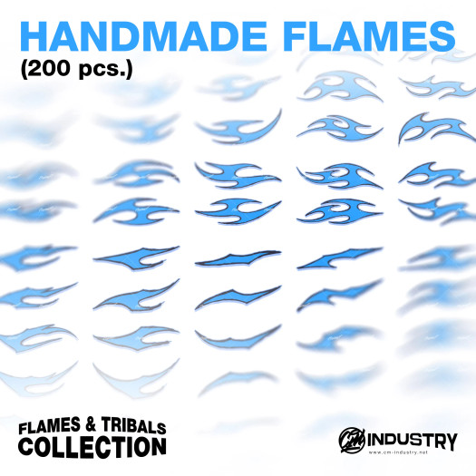 Download vector graphic packs for car wraps and livery design. Flames, tribals, splashes and more – transparent PNG, AI, PDF & SVG files. 15–300 elements per pack.